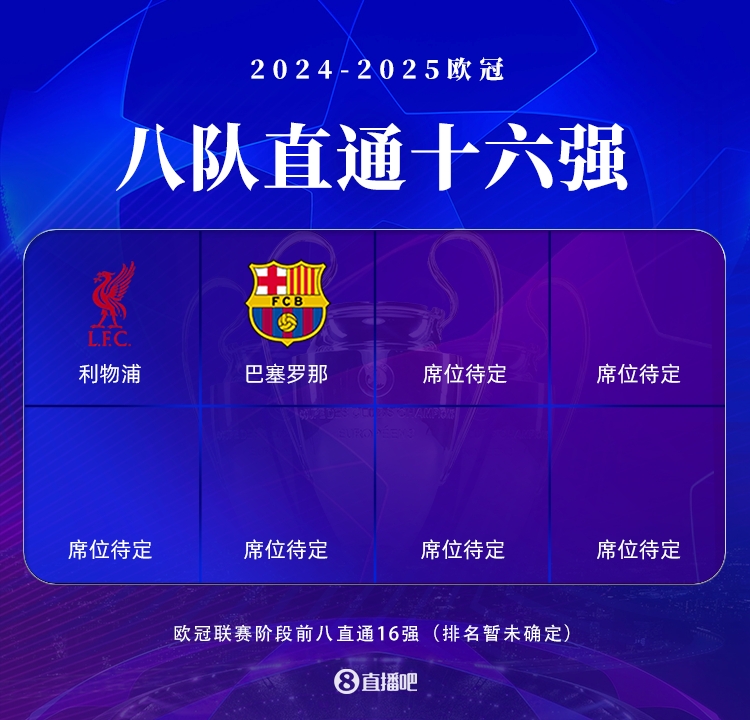 欧冠欧联的前7轮结束,在仅剩最后1轮的情况下,一共16个直通名额,仅有3支队伍拿到:欧冠的利物浦和巴萨、欧联的拉齐奥。