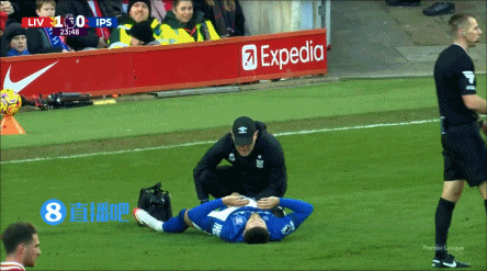 01月25日讯 利物浦vs伊普斯维奇第25分钟,伊镇后卫伯恩斯与加克波对抗后长时间倒地不起,担架进场将他抬下。